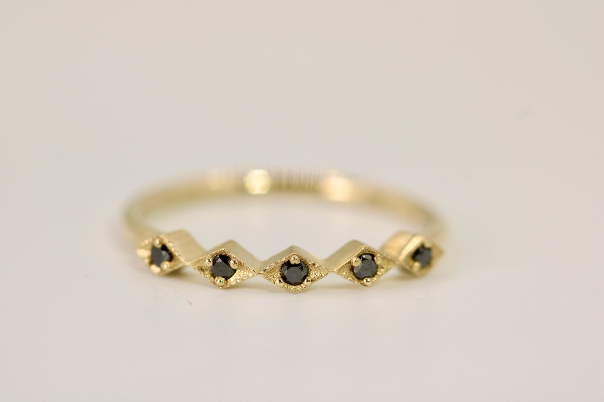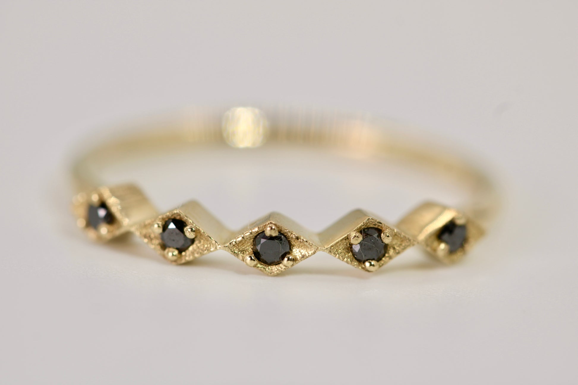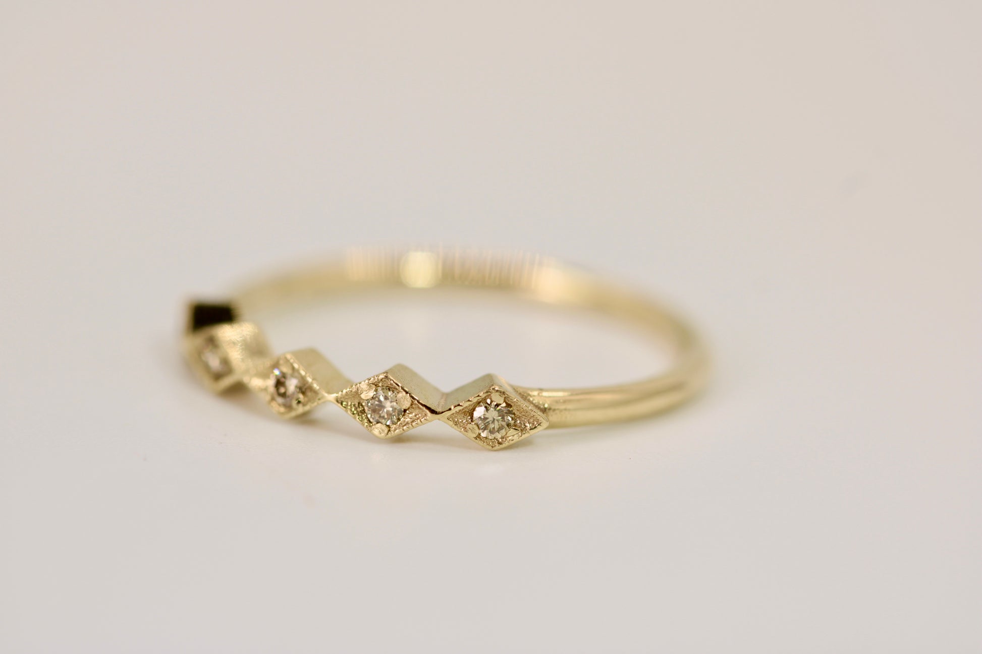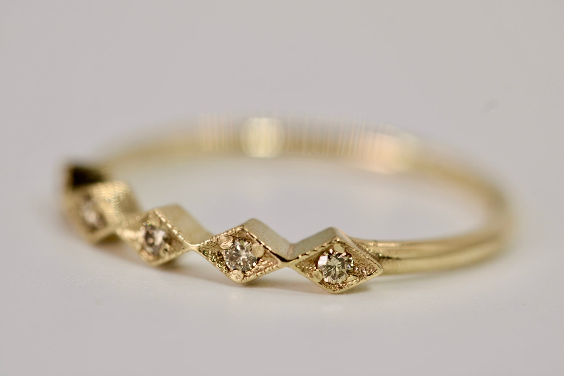 Leah Ring - Stackable Gold Diamond Ring - Rhombus Design